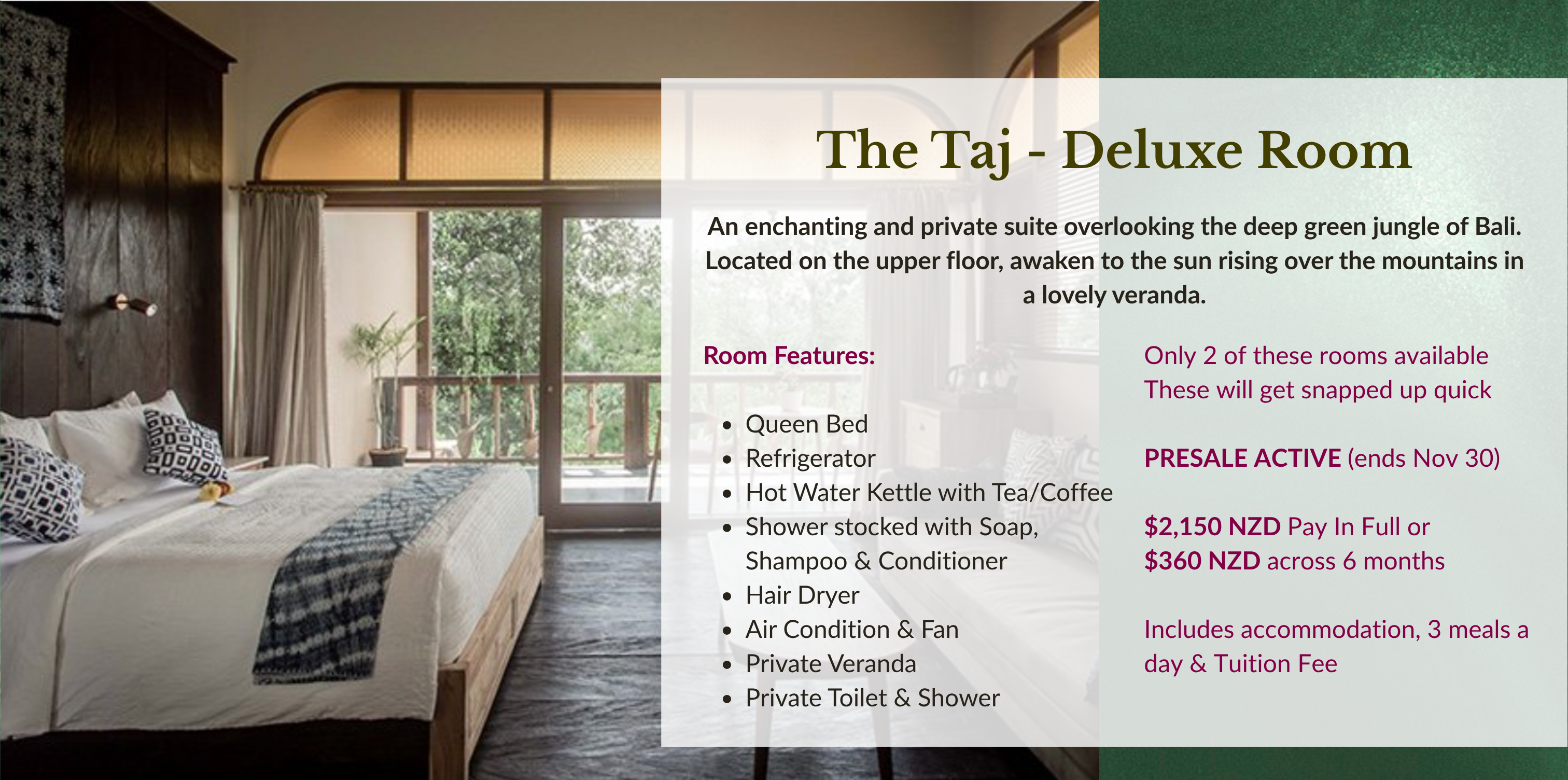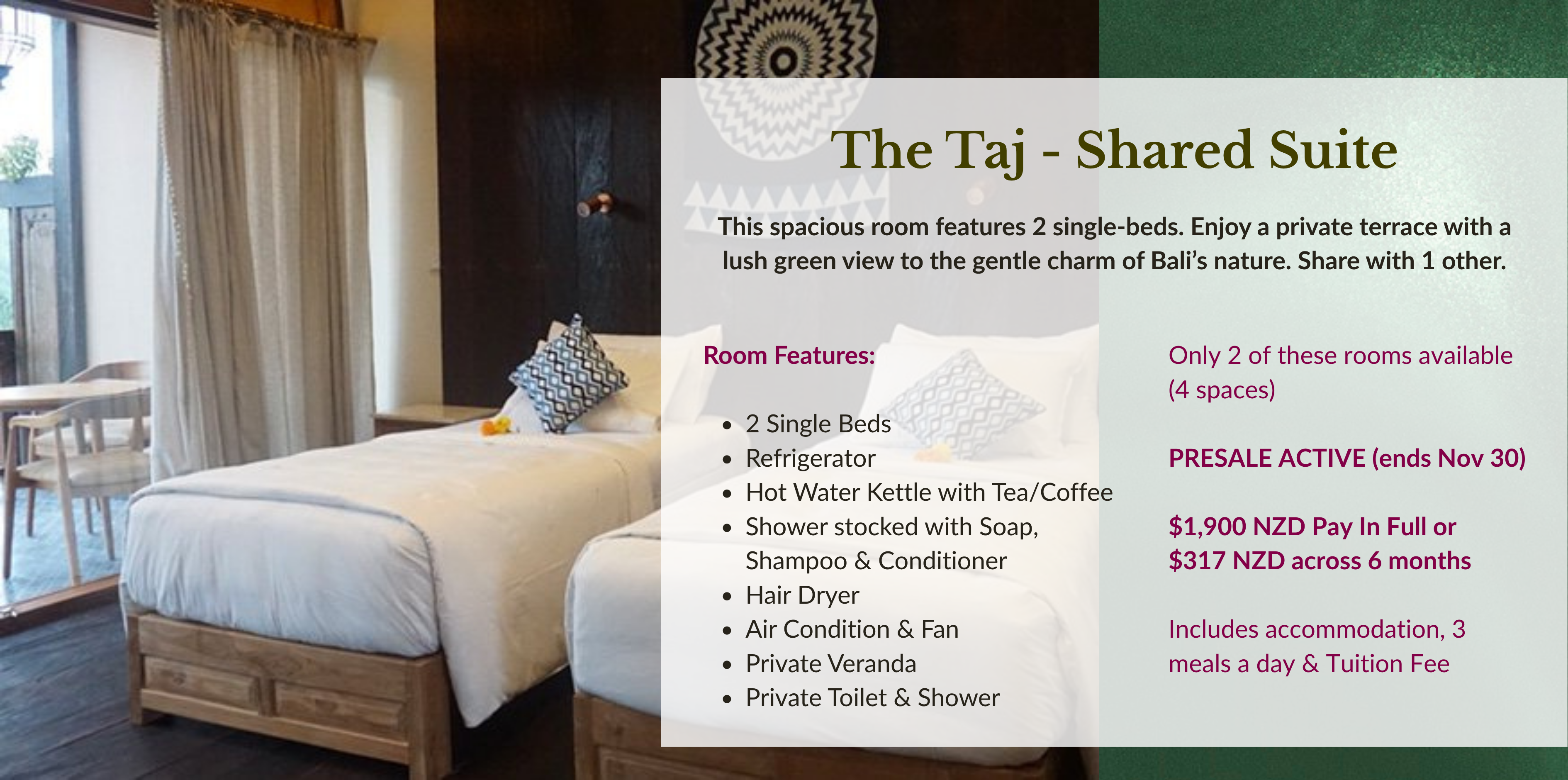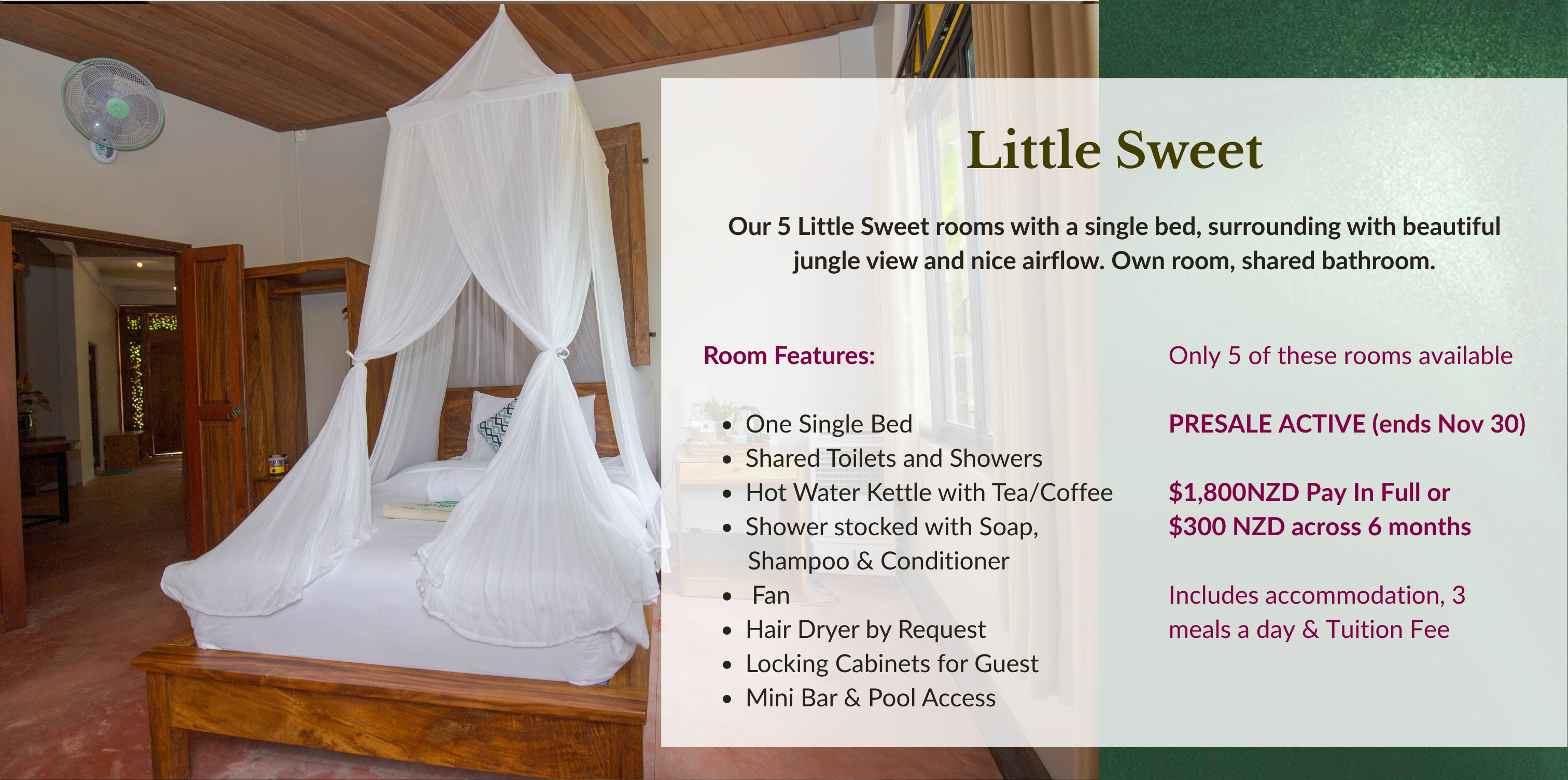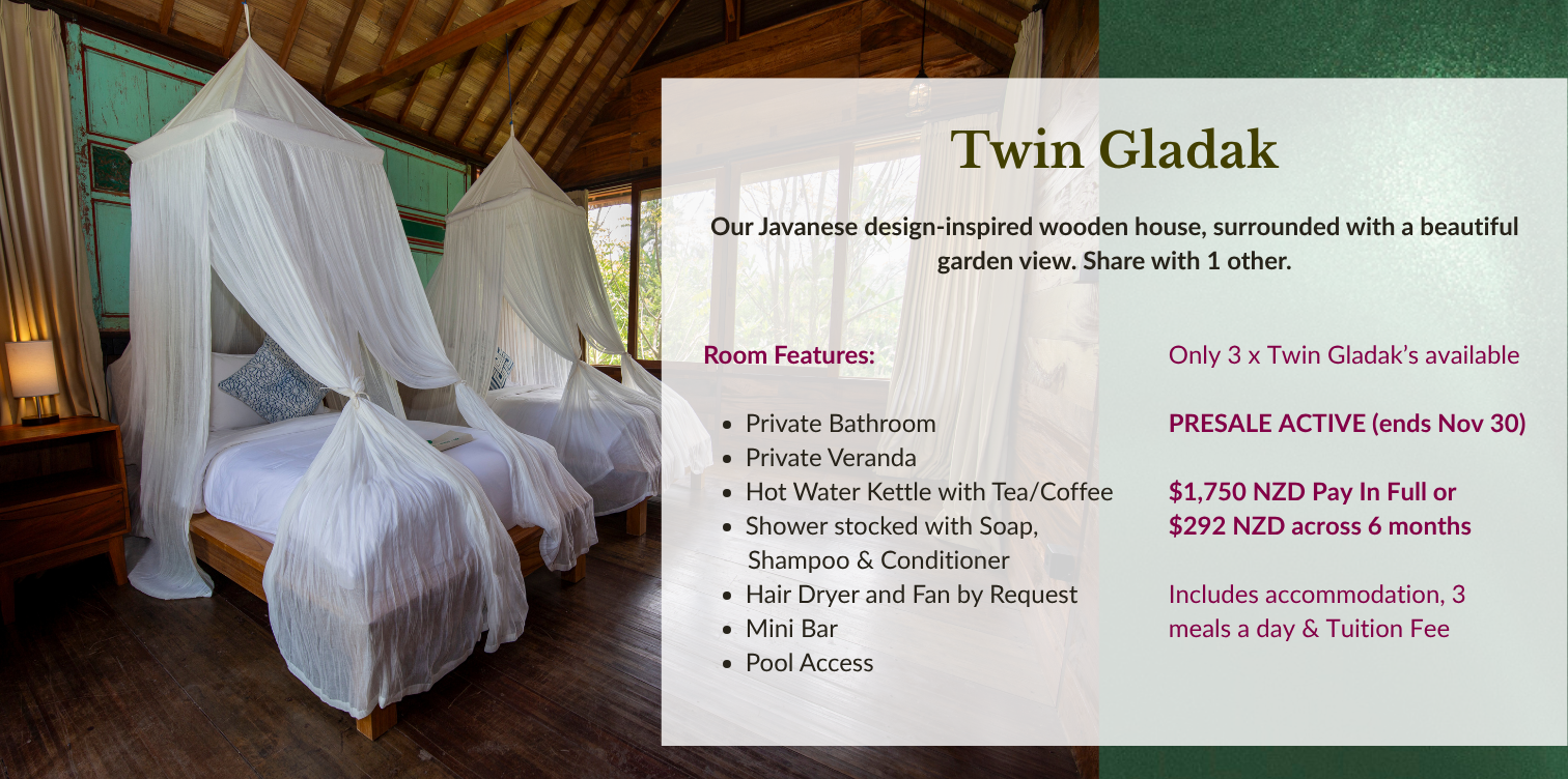 ✔ 3 nights accommodation at our lush venue - The Yogi's Garden Bali